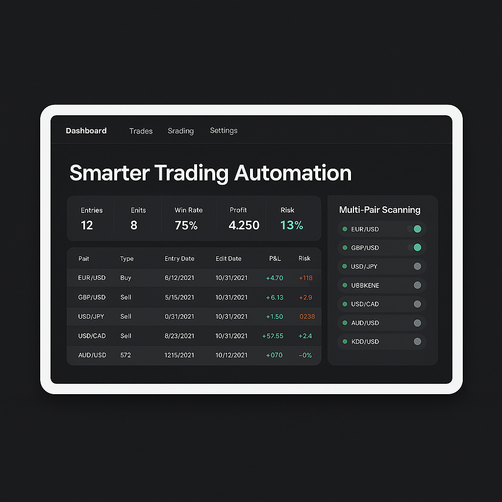 Detect the trend, scan the markets, manage your trades — automatically and with precision.